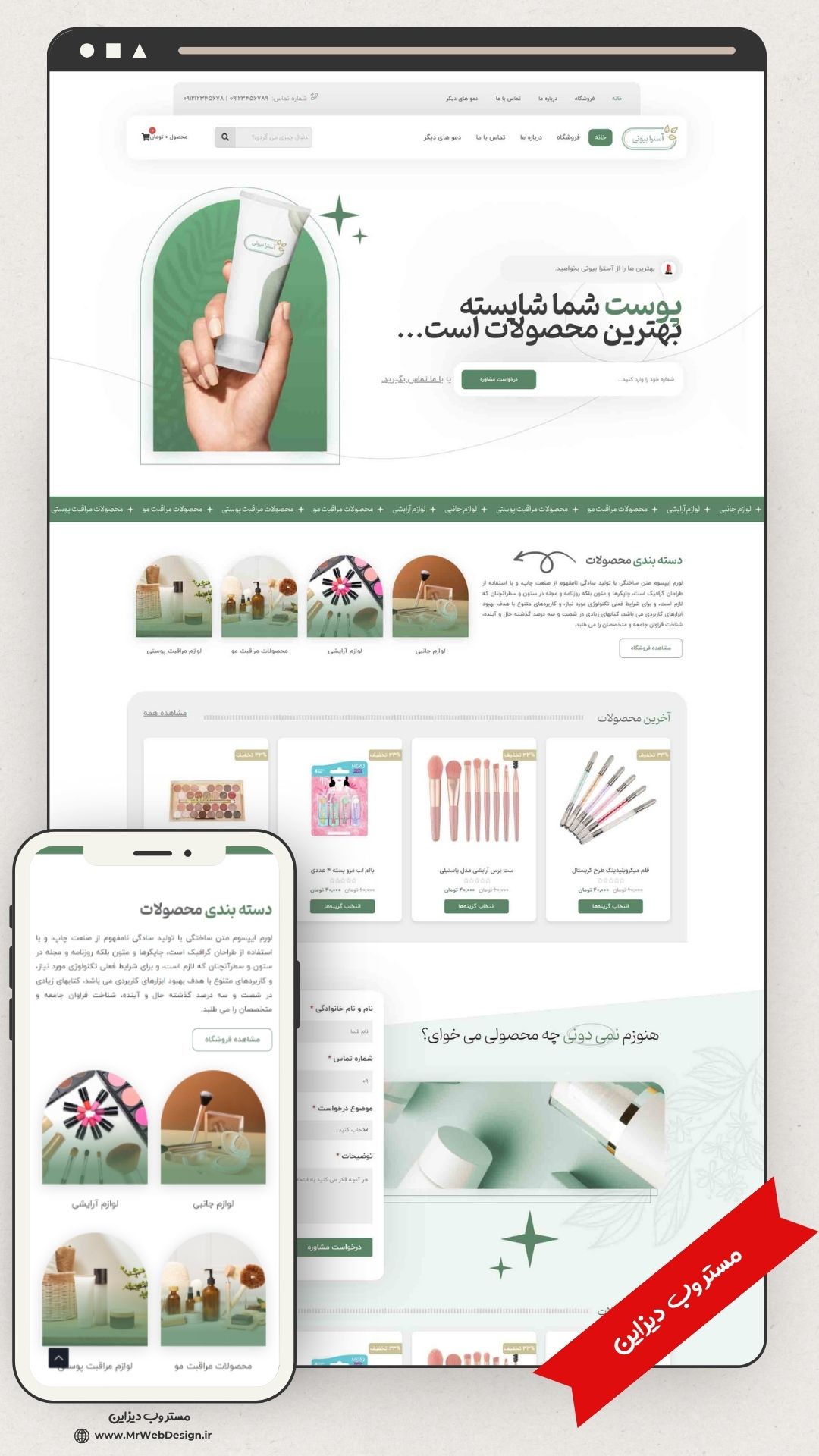 طراحی سایت فروشگاهی لوازم آرایشی و بهداشتی طرح آسترا با 6 ماه پشتیبانی حرفه ای رایگان مستر وب دیزاین