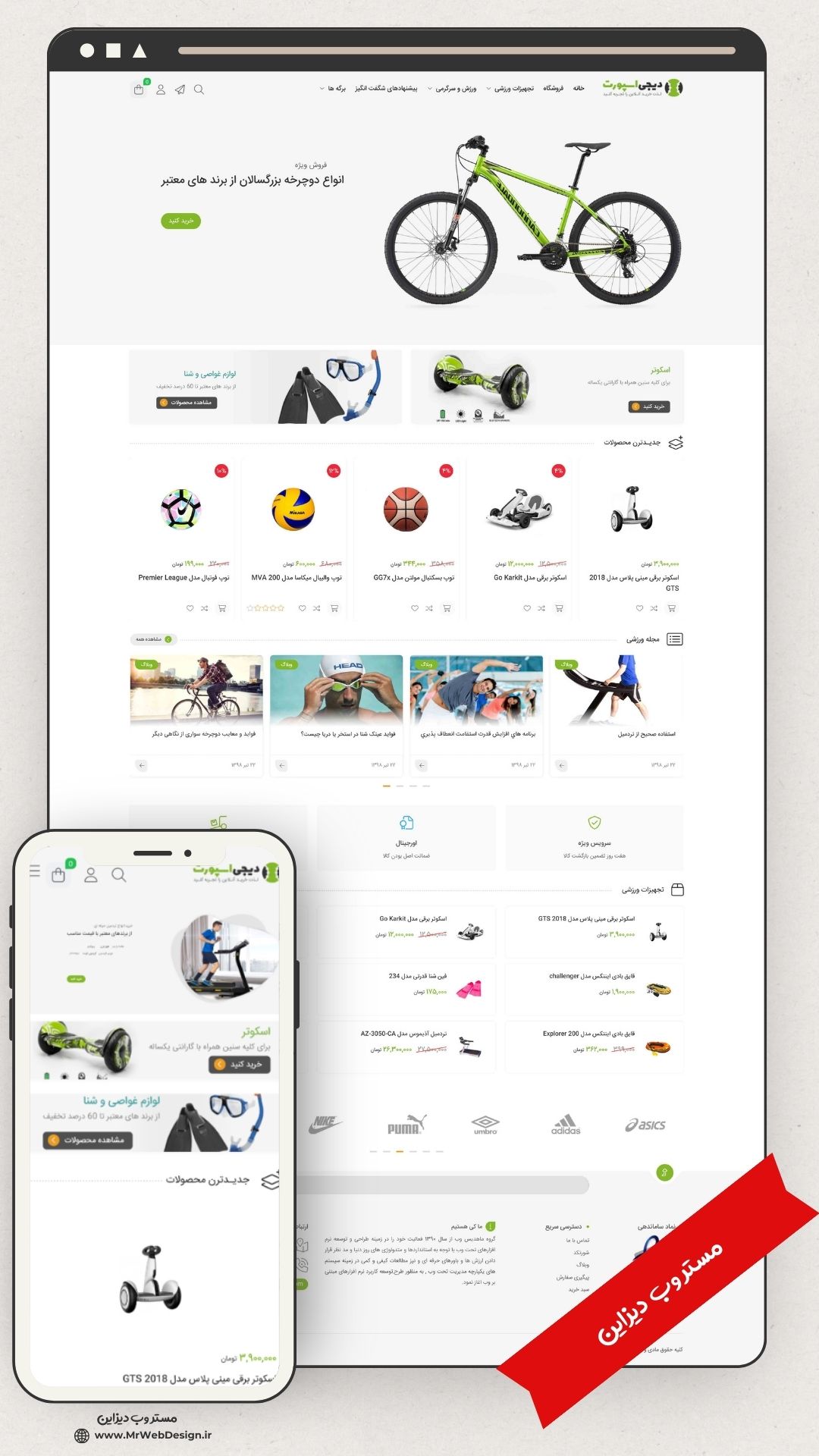 طراحی سایت فروشگاه لوازم ورزشی طرح دیجی لند با 6 ماه پشتیبانی حرفه ای رایگان مستر وب دیزاین