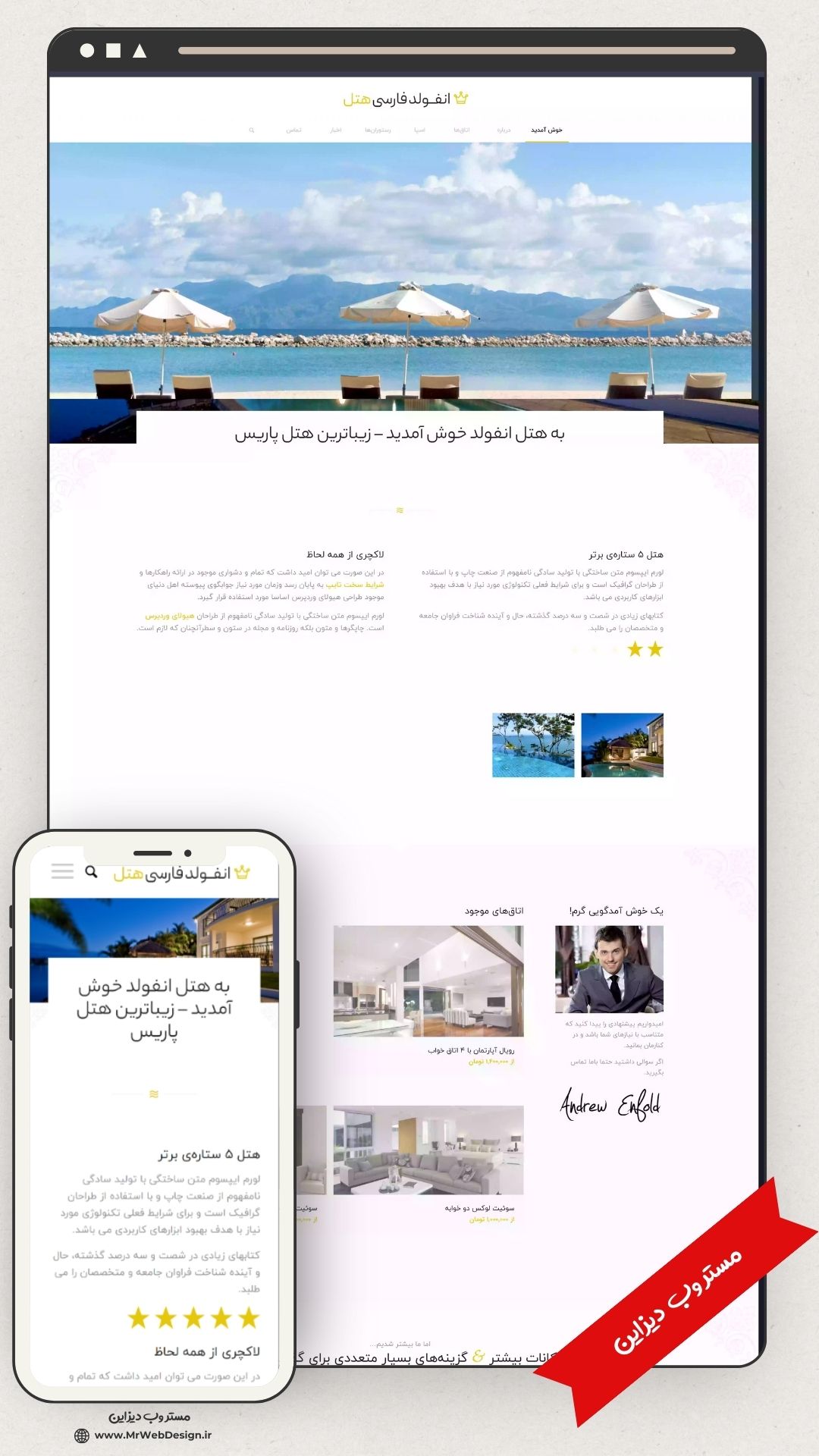 طراحی سایت رزرو هتل طرح انفولد با 6 ماه پشتیبانی حرفه ای رایگان مستر وب دیزاین