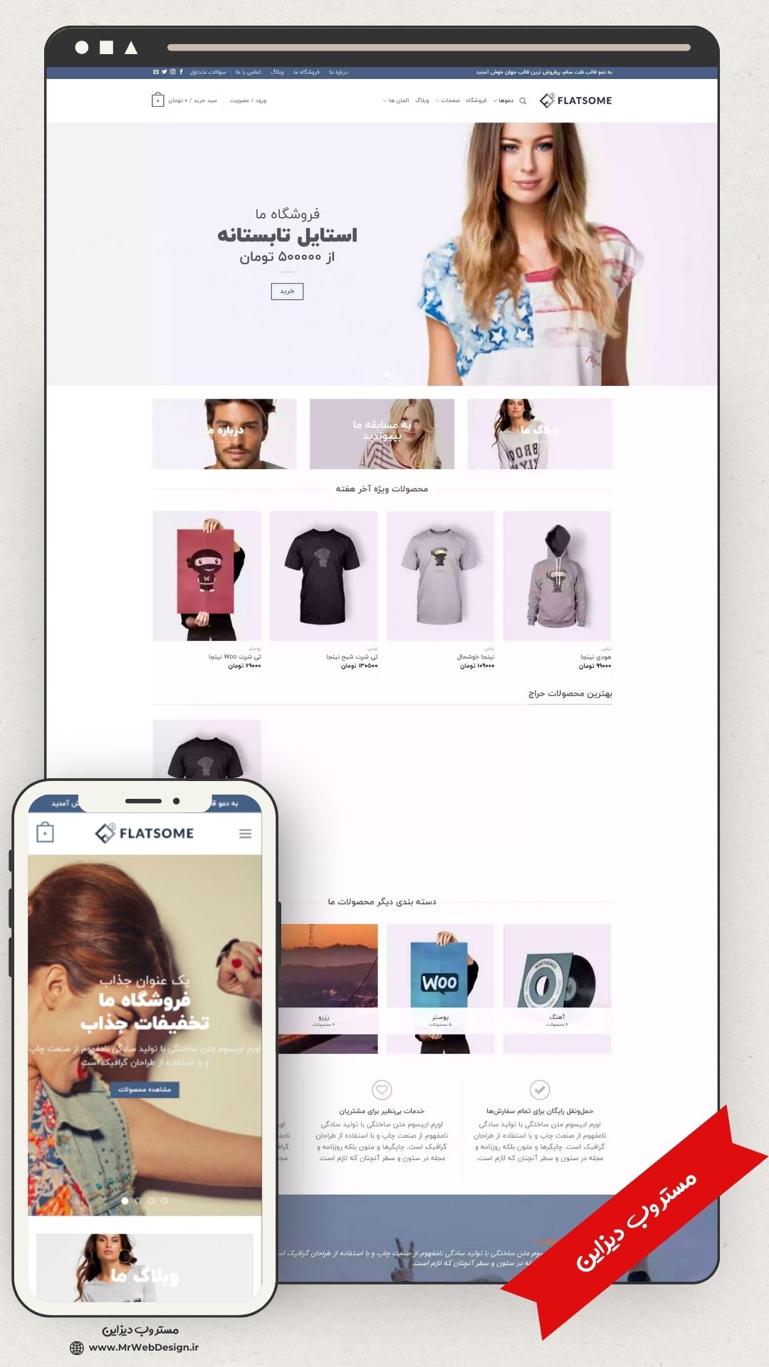 طراحی طراحی سایت فروشگاهی لباس طرح فلت سام با 6 ماه پشتیبانی حرفه ای رایگان مستر وب دیزاین