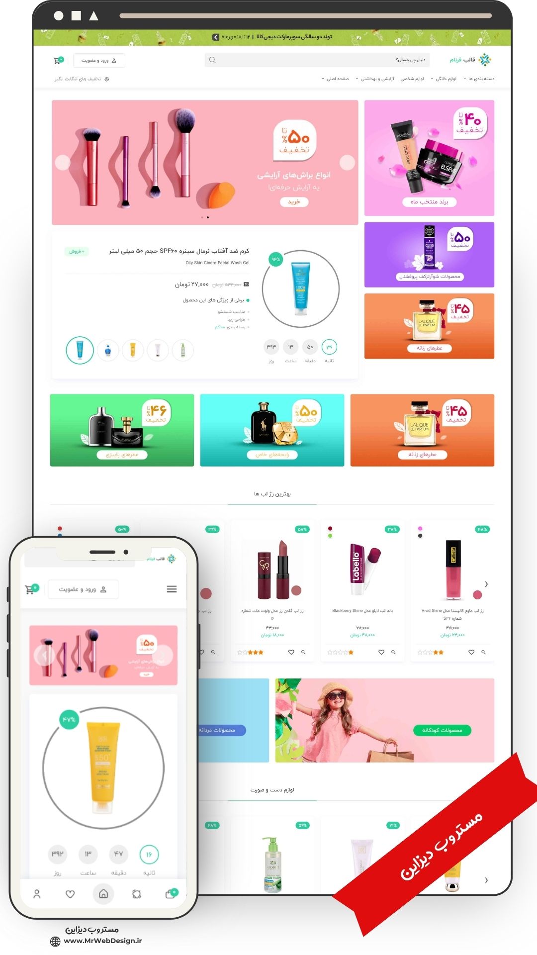 طراحی سایت فروشگاهی لوازم آرایشی طرح ایران کالا با 6 ماه پشتیبانی حرفه ای رایگان مستر وب دیزاین