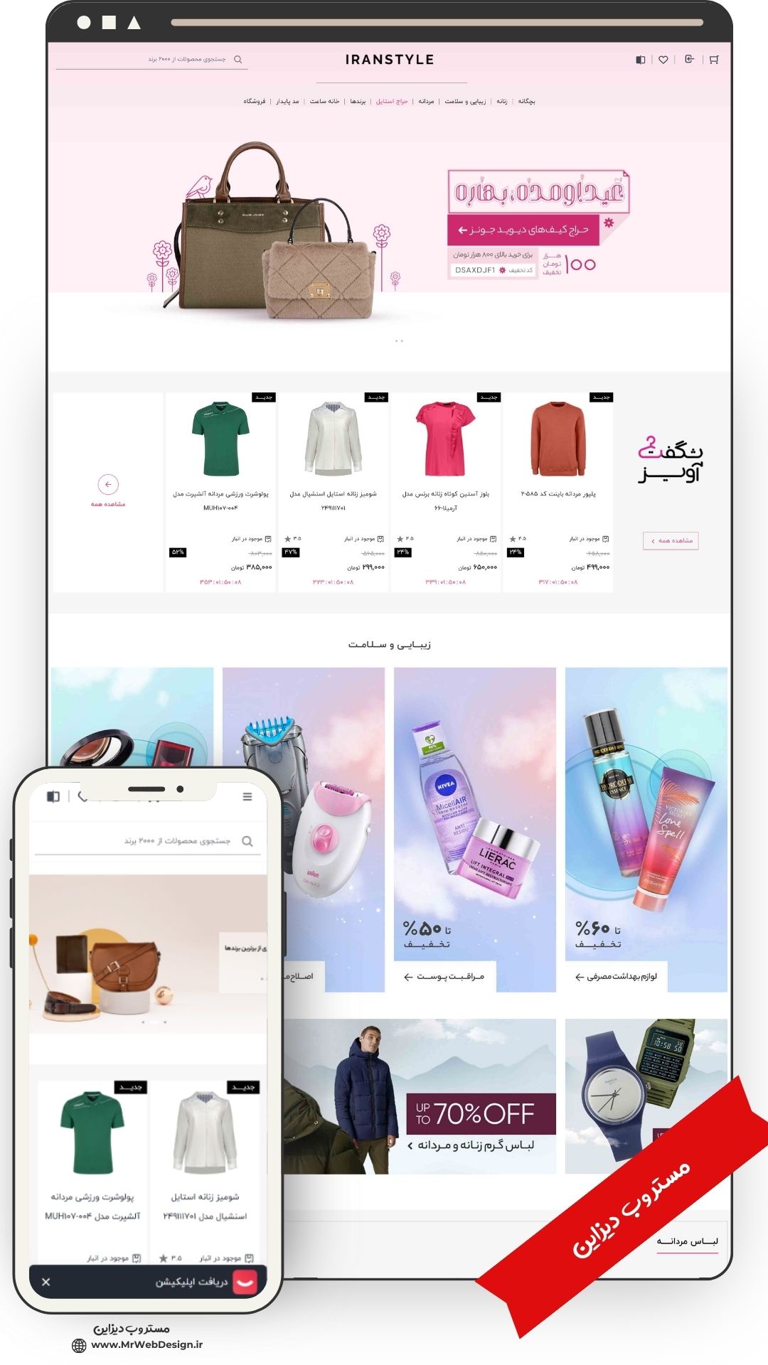 طراحی سایت فروشگاهی مد و پوشاک طرح ایران کالا با 6 ماه پشتیبانی حرفه ای رایگان مستر وب دیزاین