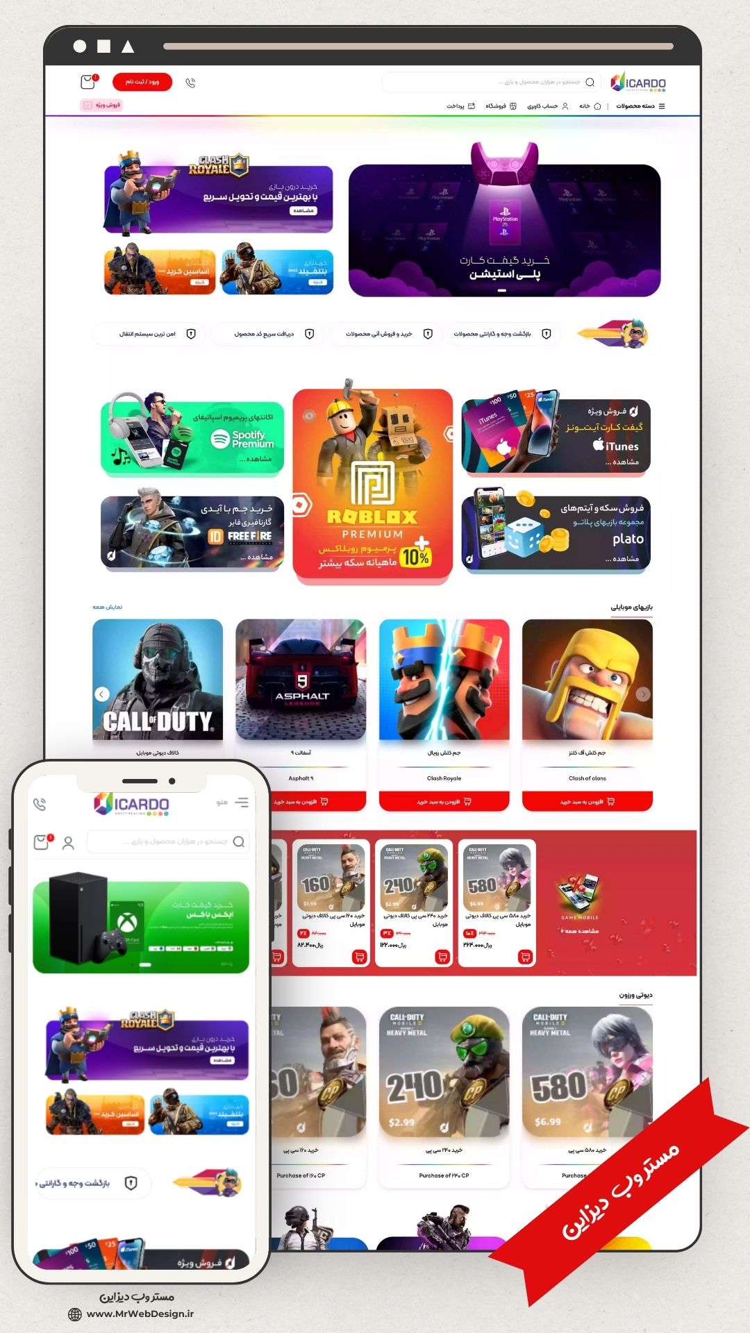 طراحی سایت فروشگاهی بازی و اپلیکیشن طرح پارس با 6 ماه پشتیبانی حرفه ای رایگان مستر وب دیزاین