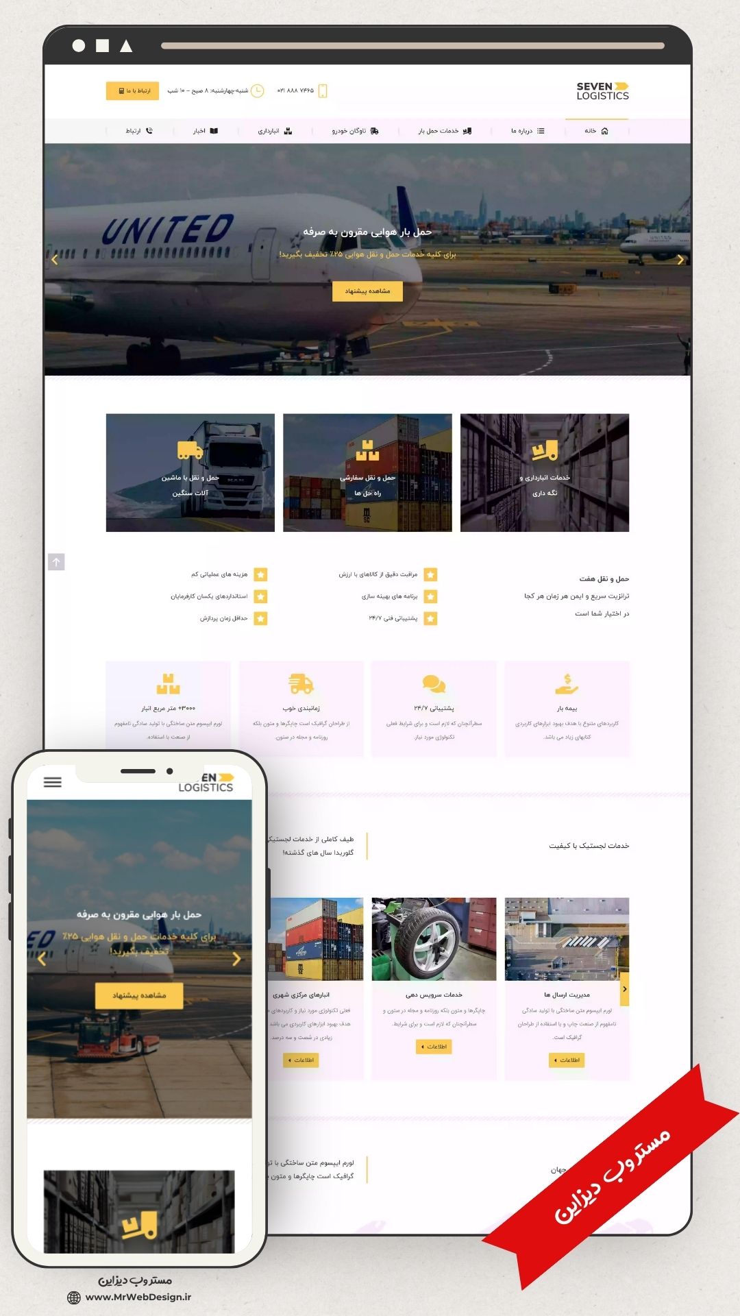 طراحی سایت شرکتی حمل و نقل طرح سون با 6 ماه پشتیبانی حرفه ای رایگان مستر وب دیزاین