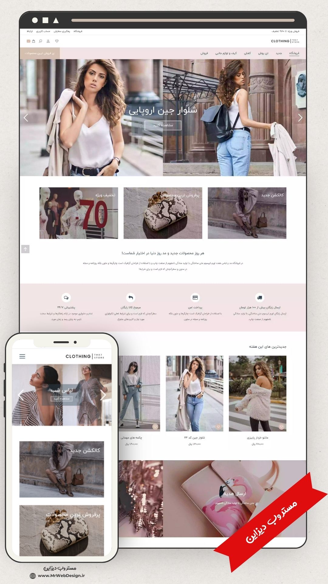 طراحی سایت فروشگاهی پوشاک زنانه طرح سون با 6 ماه پشتیبانی حرفه ای رایگان مستر وب دیزاین