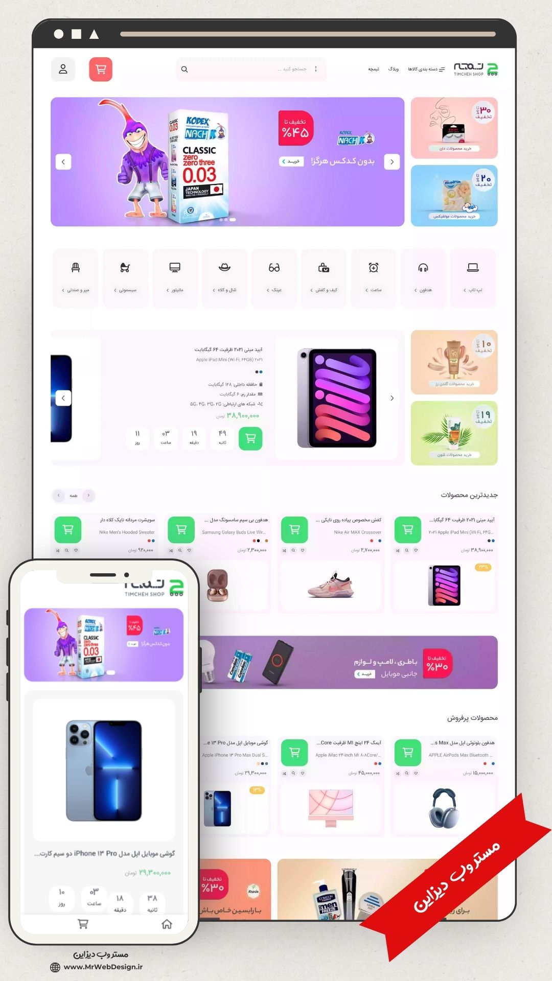 طراحی سایت فروشگاهی همه منظوره طرح تیمچه با 6 ماه پشتیبانی حرفه ای رایگان مستر وب دیزاین
