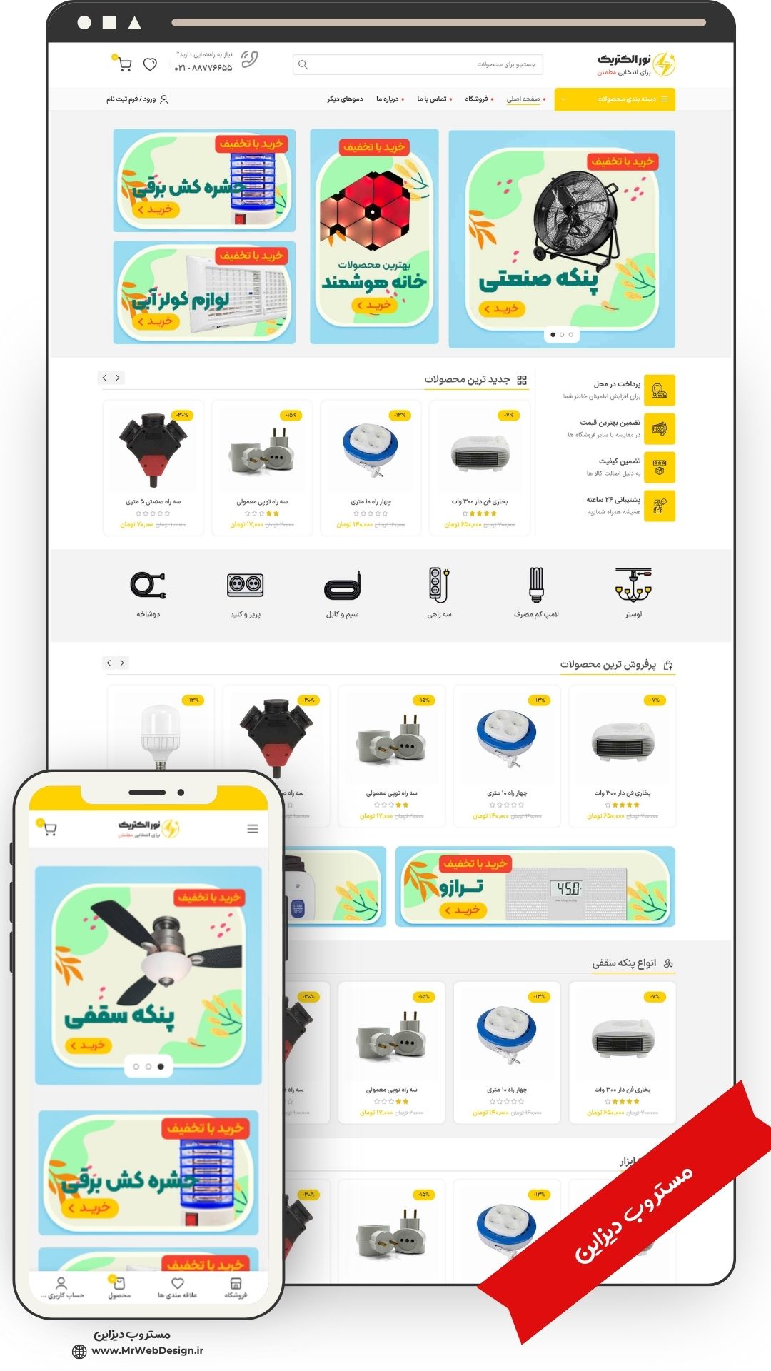 طراحی سایت فروشگاهی لوازم الکتریکی طرح وودمارت با 6 ماه پشتیبانی حرفه ای رایگان مستر وب دیزاین