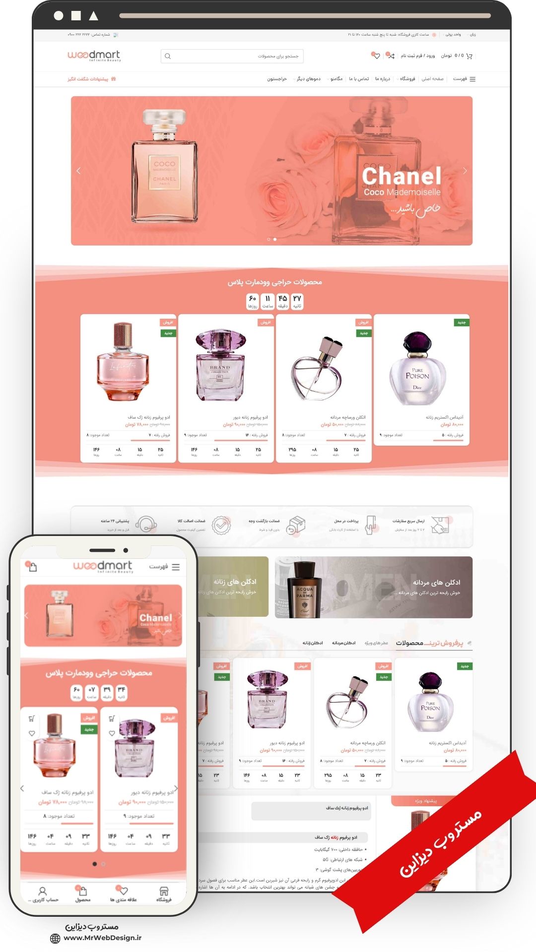 طراحی سایت فروشگاهی عطر و ادکلن طرح وودمارت با 6 ماه پشتیبانی حرفه ای رایگان مستر وب دیزاین